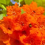 - Flores: Inflorescencias cimosas subterminales y bisexuales, cáliz tubular-campanulado, lobos desiguales; corola en forma de embudo, de color roja-anaranjada, brillante